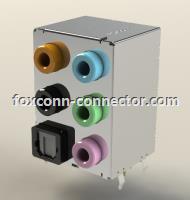 Desc.: Audio Jack, 5 Port and POF, R/A,T/H Type,┻3.5mm [.138"],25 Pos.